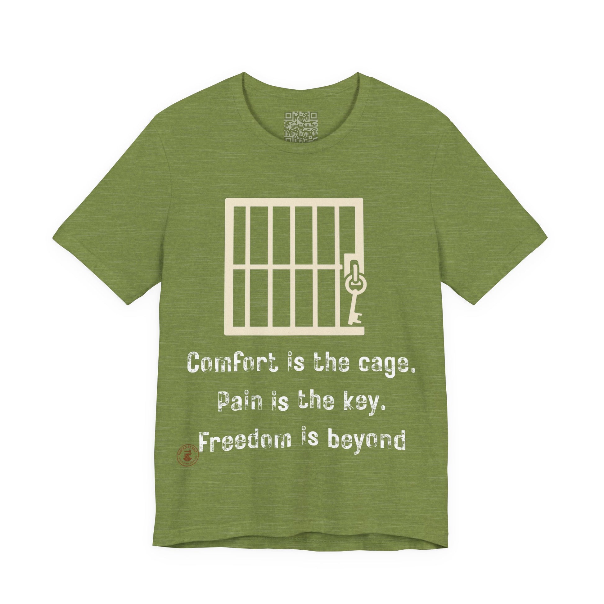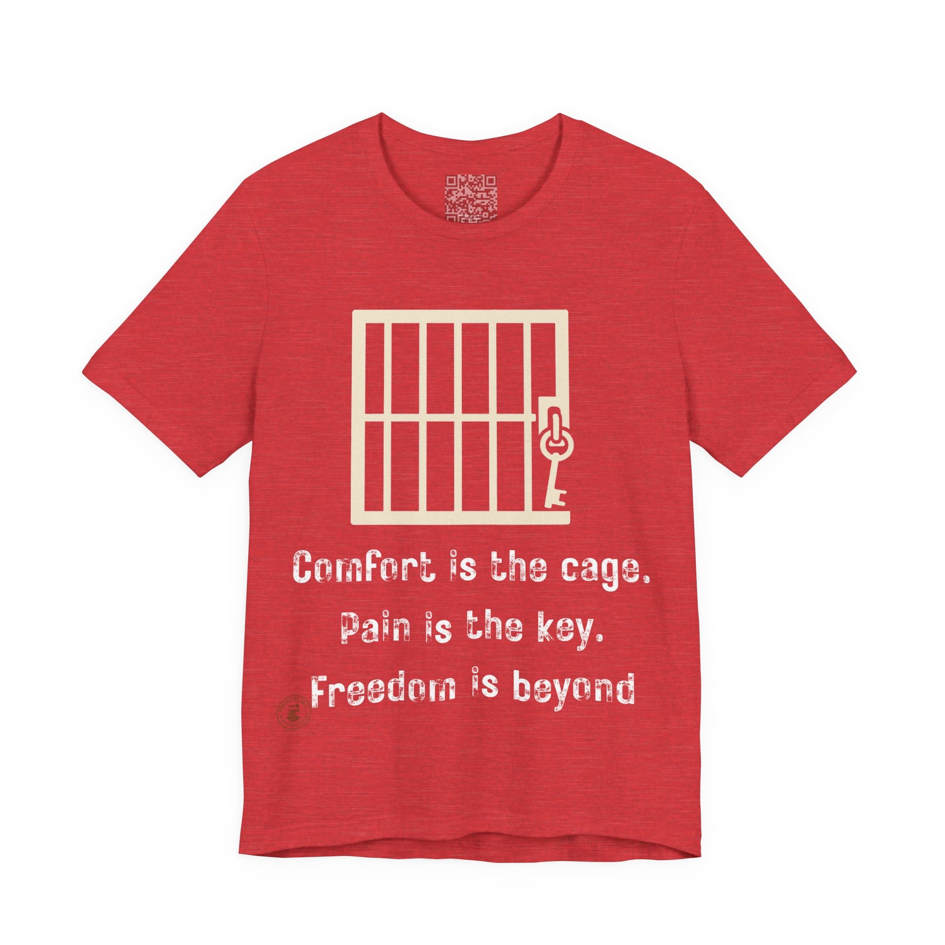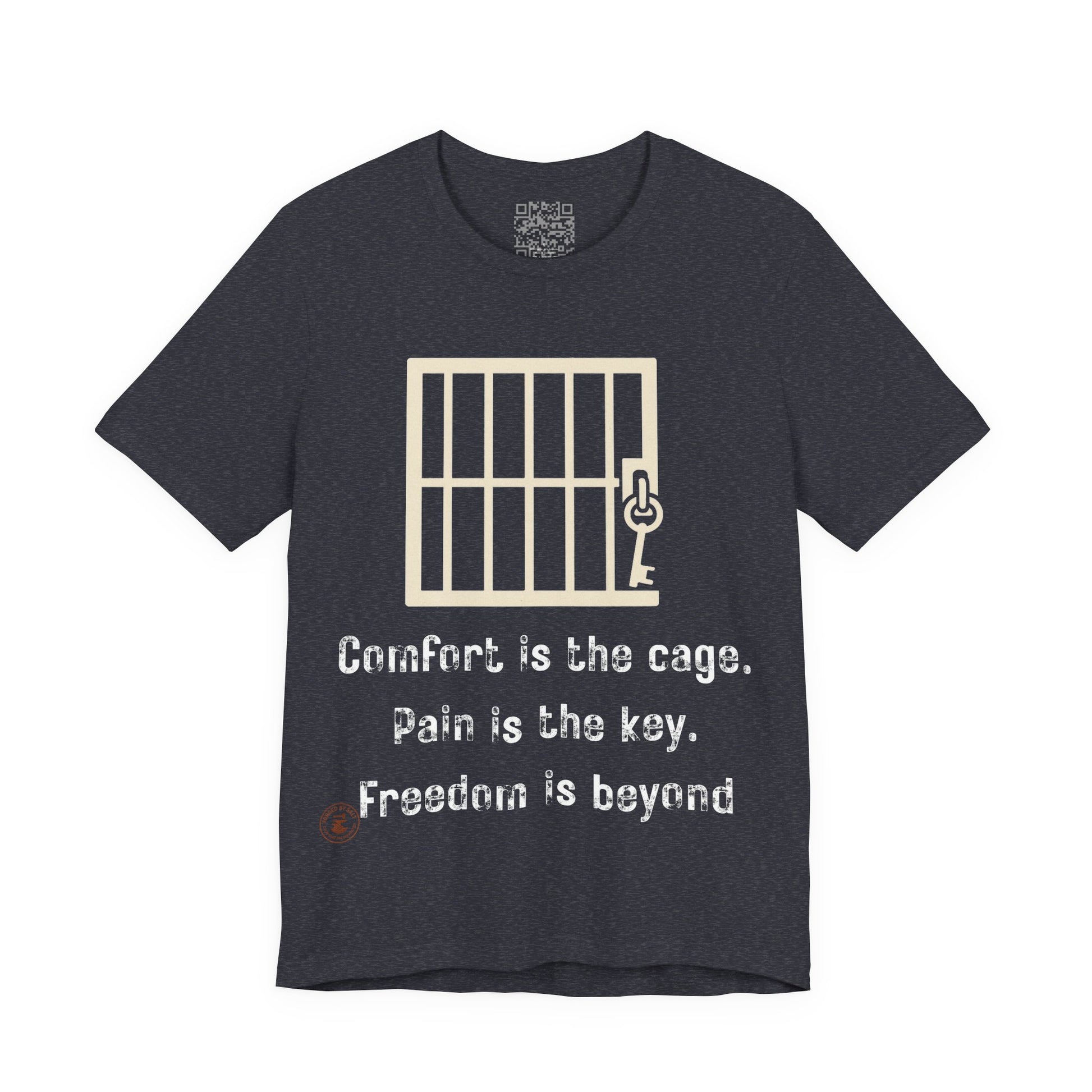 The “Comfort Is the Cage. Pain Is the Key. Freedom Is Beyond.” tee is a daily reminder that real progress starts where comfort ends. With its bold minimalist design featuring a symbolic key and cage graphic, this shirt inspires perseverance, grit, and purpose — whether you’re training, grinding, or chasing your goals.