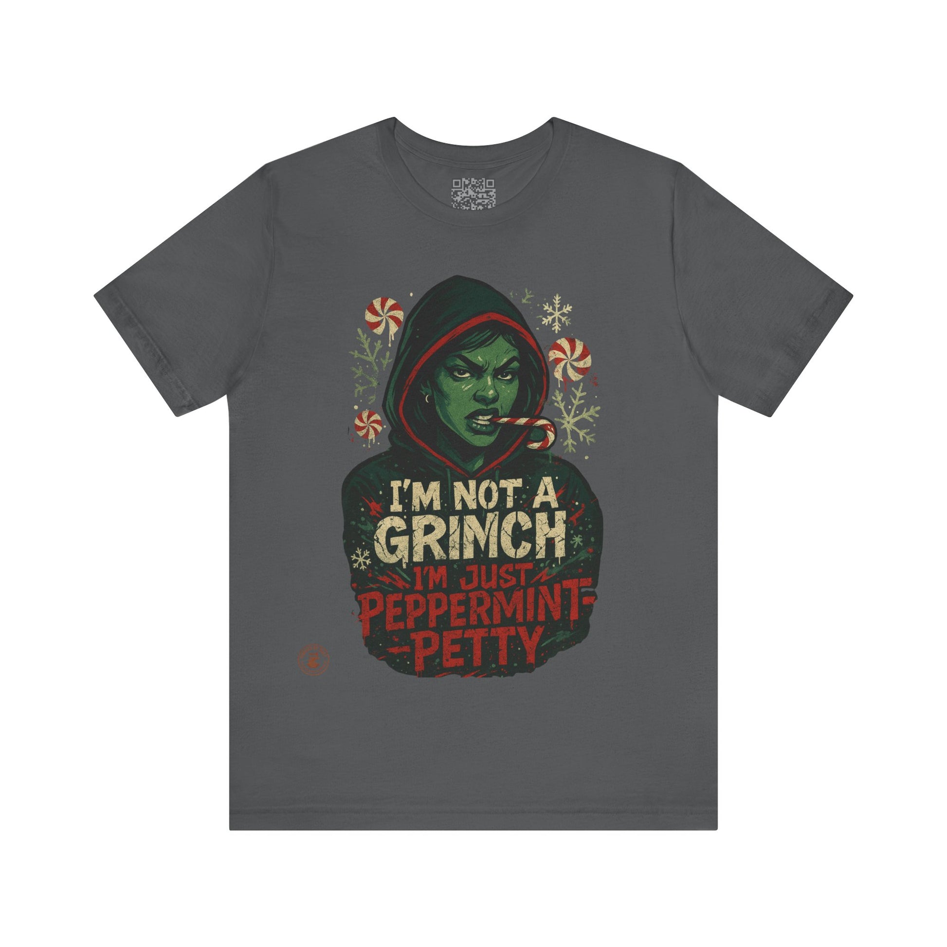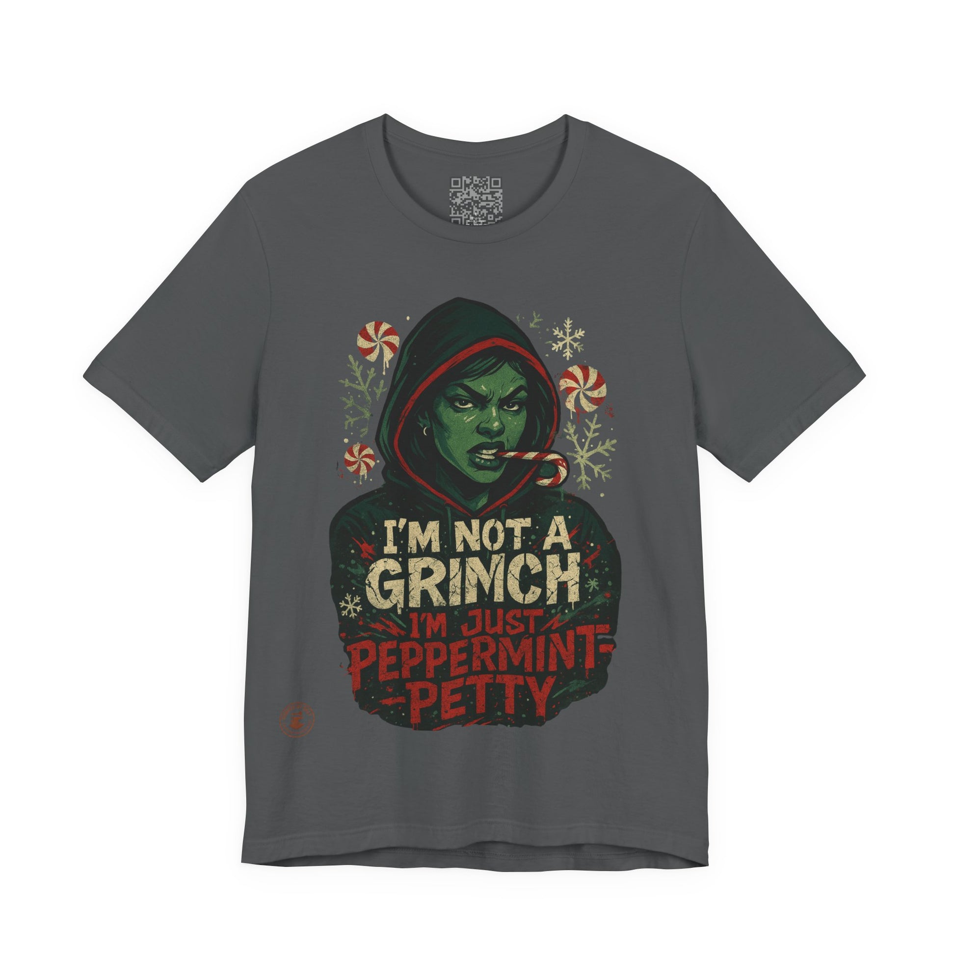 This Unisex Jersey Short Sleeve Tee captures the fun and festive spirit of the holiday season. Featuring a humorous design that declares 'I'm Not a Grinch, I'm Just Peppermint Petty,' it’s perfect for those who appreciate a light-hearted twist on traditional holiday themes. The vibrant colors and crisp details make it a standout piece, ideal for casual outings with friends or cozy family gatherings. This tee effortlessly complements your wardrobe, bringing a pop of personality to your everyday looks. It's an excellent choice for the holiday season, making it a perfect gift for party-goers, holiday enthusiasts, or anyone with a sense of humor. Whether it's for Christmas parties, gift exchanges, or just spreading festive cheer, this tee is sure to bring smiles and laughter to any occasion.