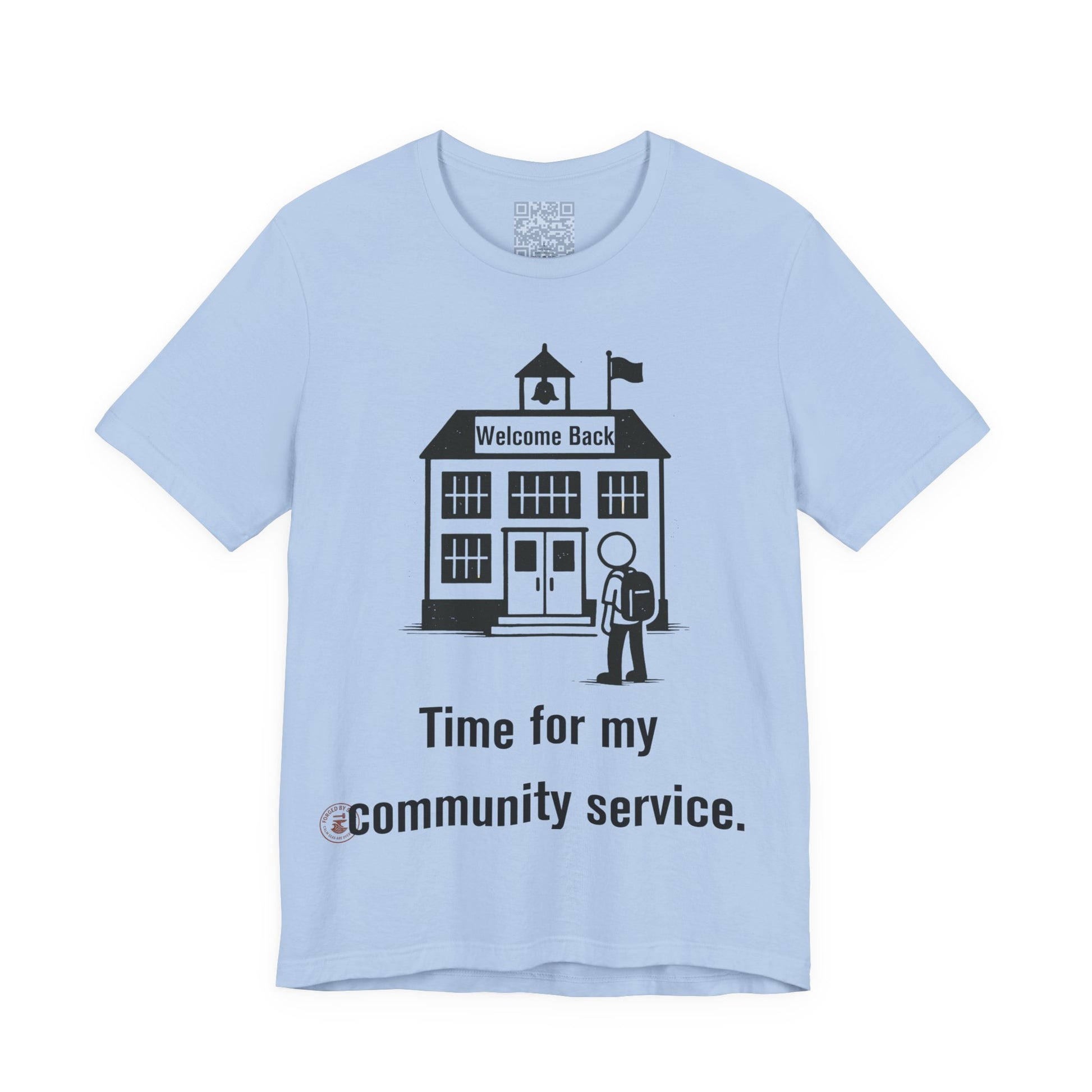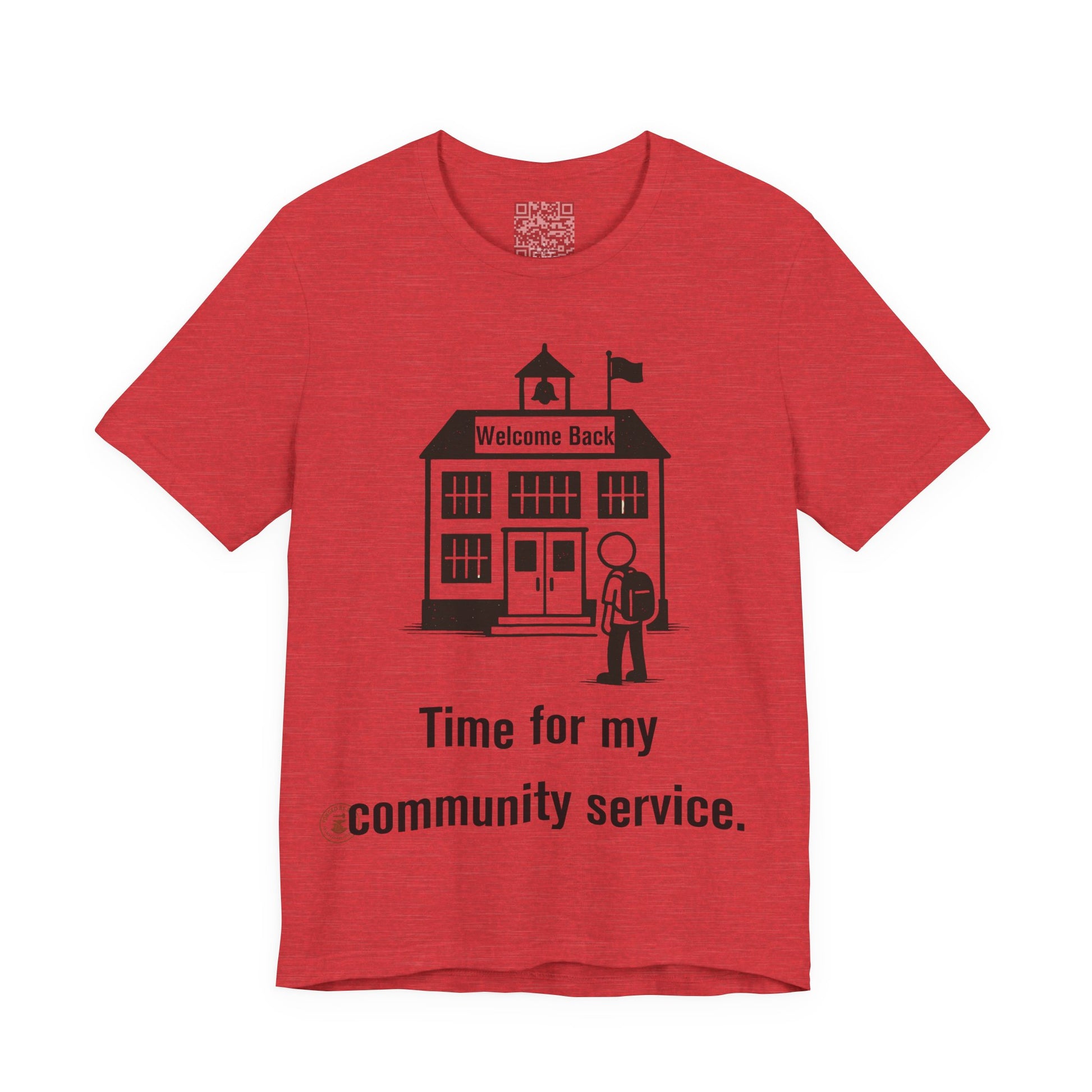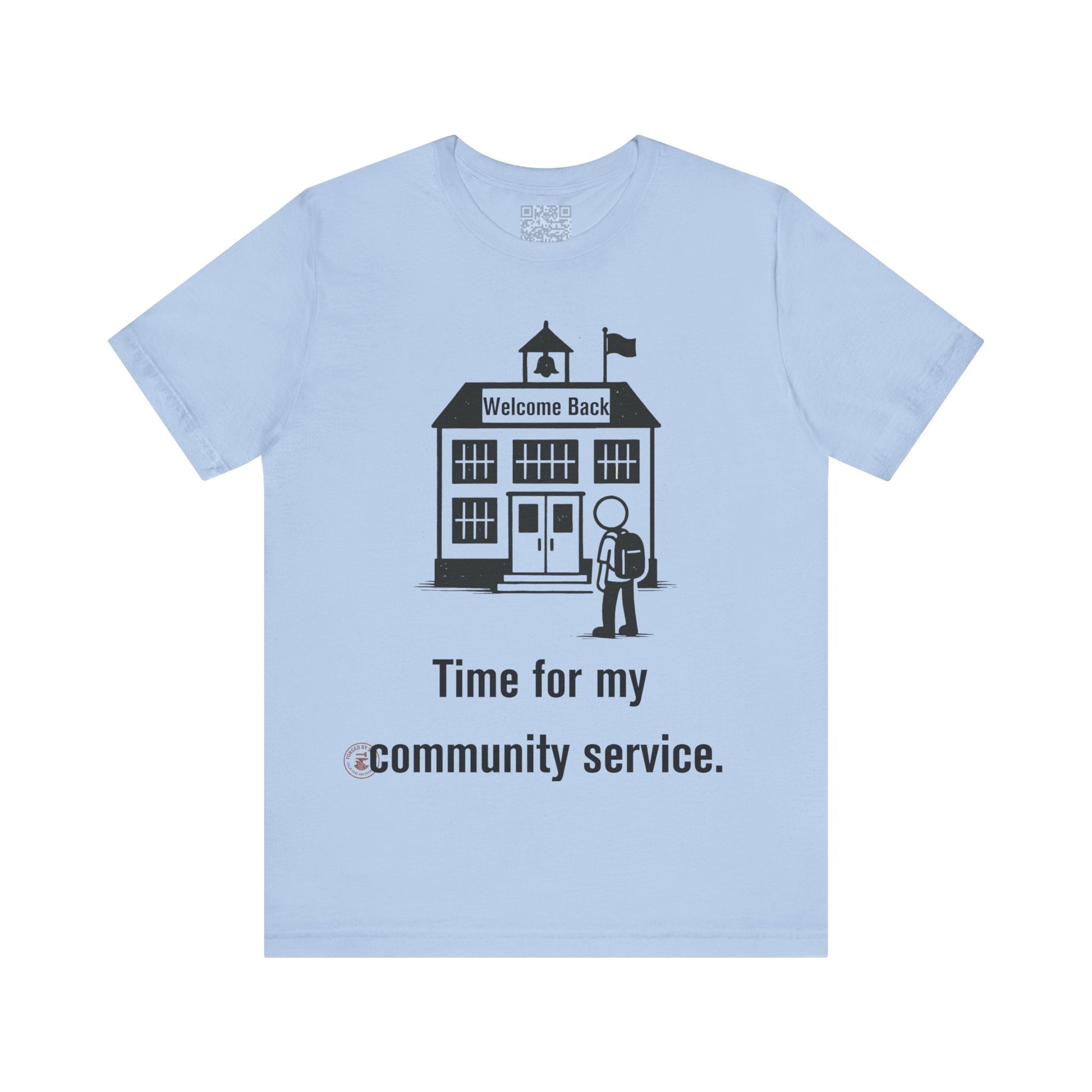 The "Time for My Community Service" T-shirt delivers the perfect blend of sarcasm and style, featuring a student walking into school under a "Welcome Back" sign with a bold, distressed caption. Ideal for students, teachers with humor, or anyone who treats school like a daily mandatory program.