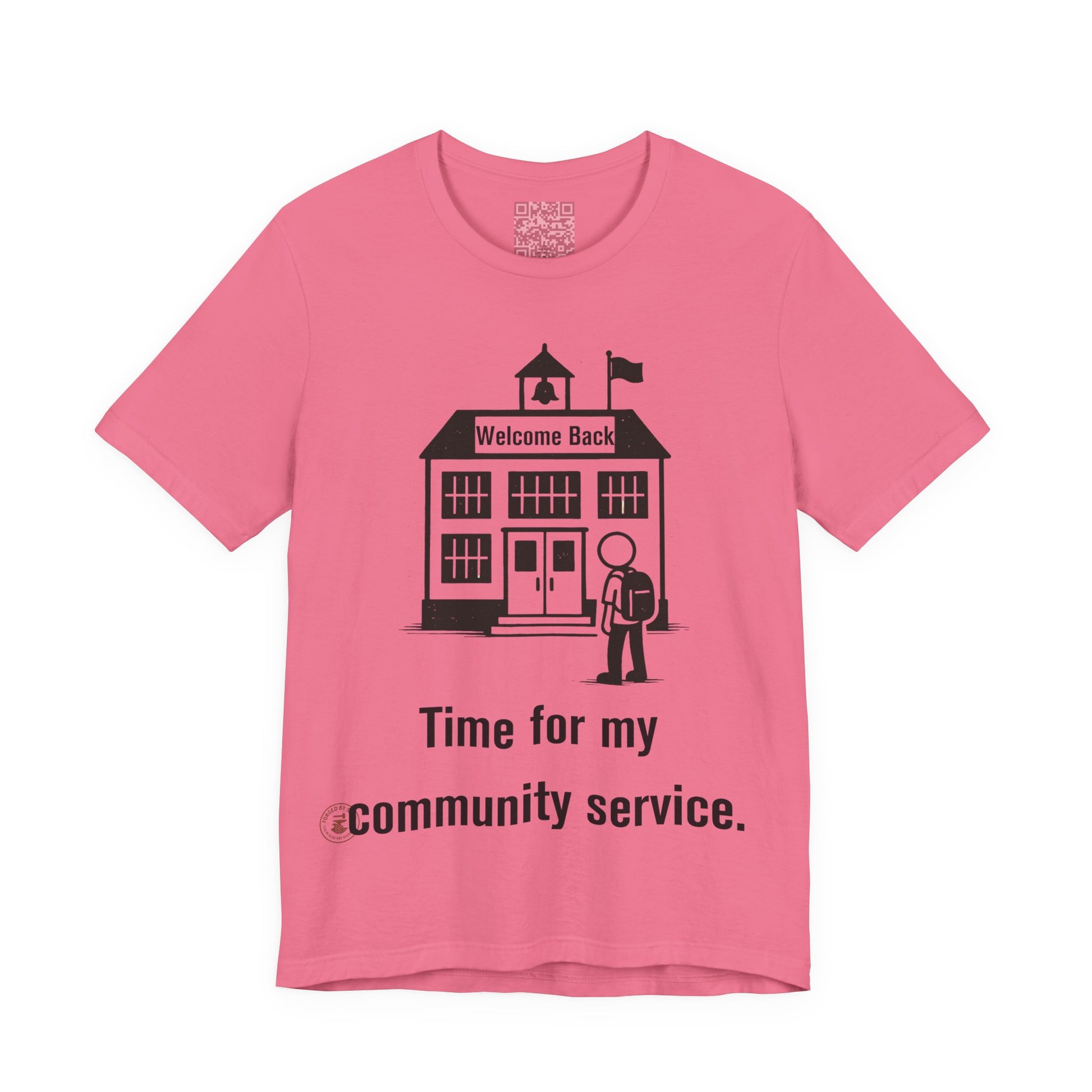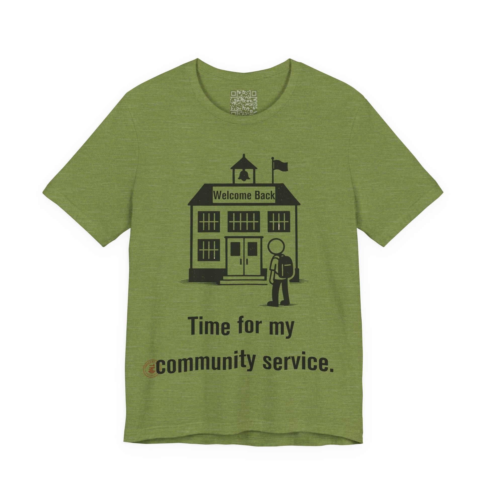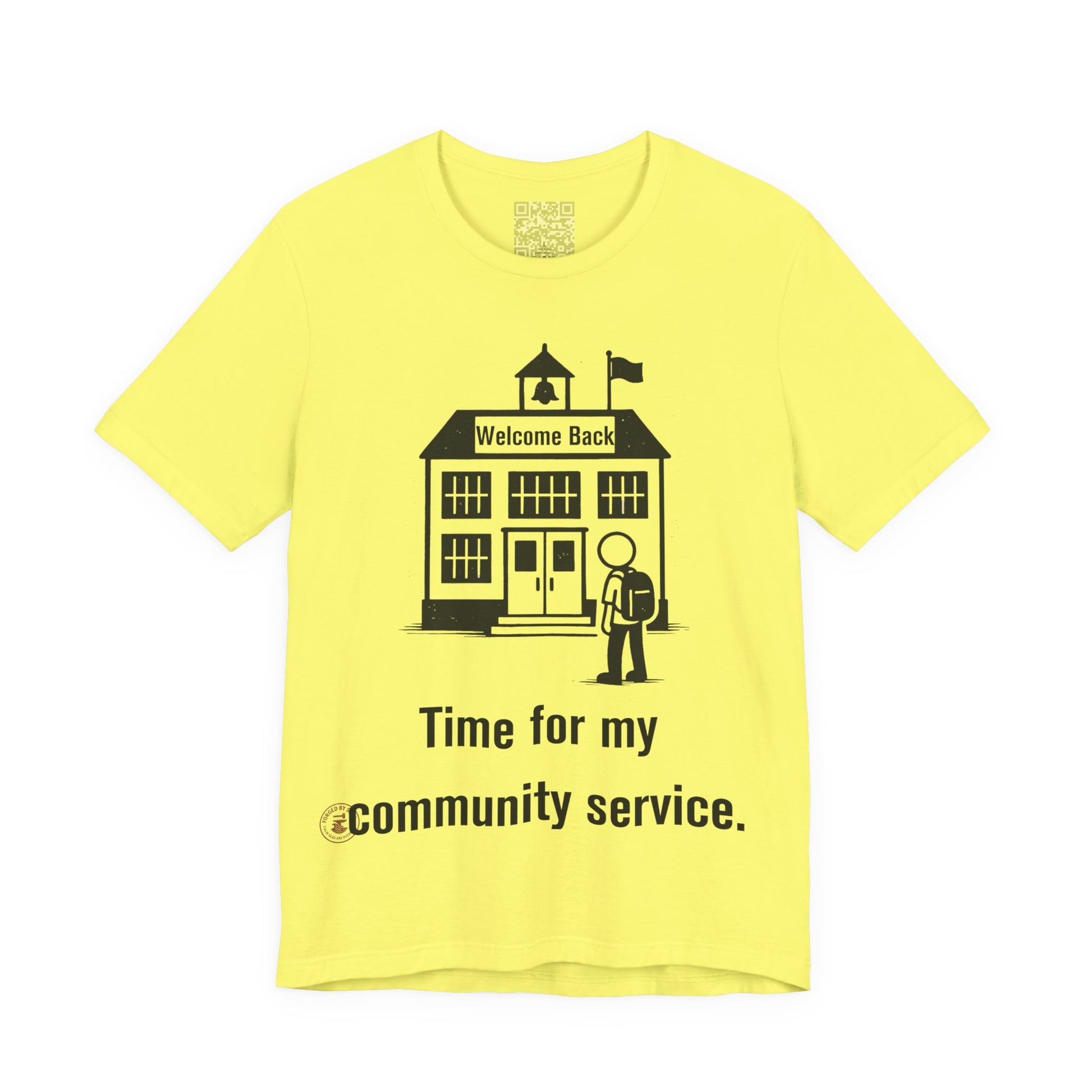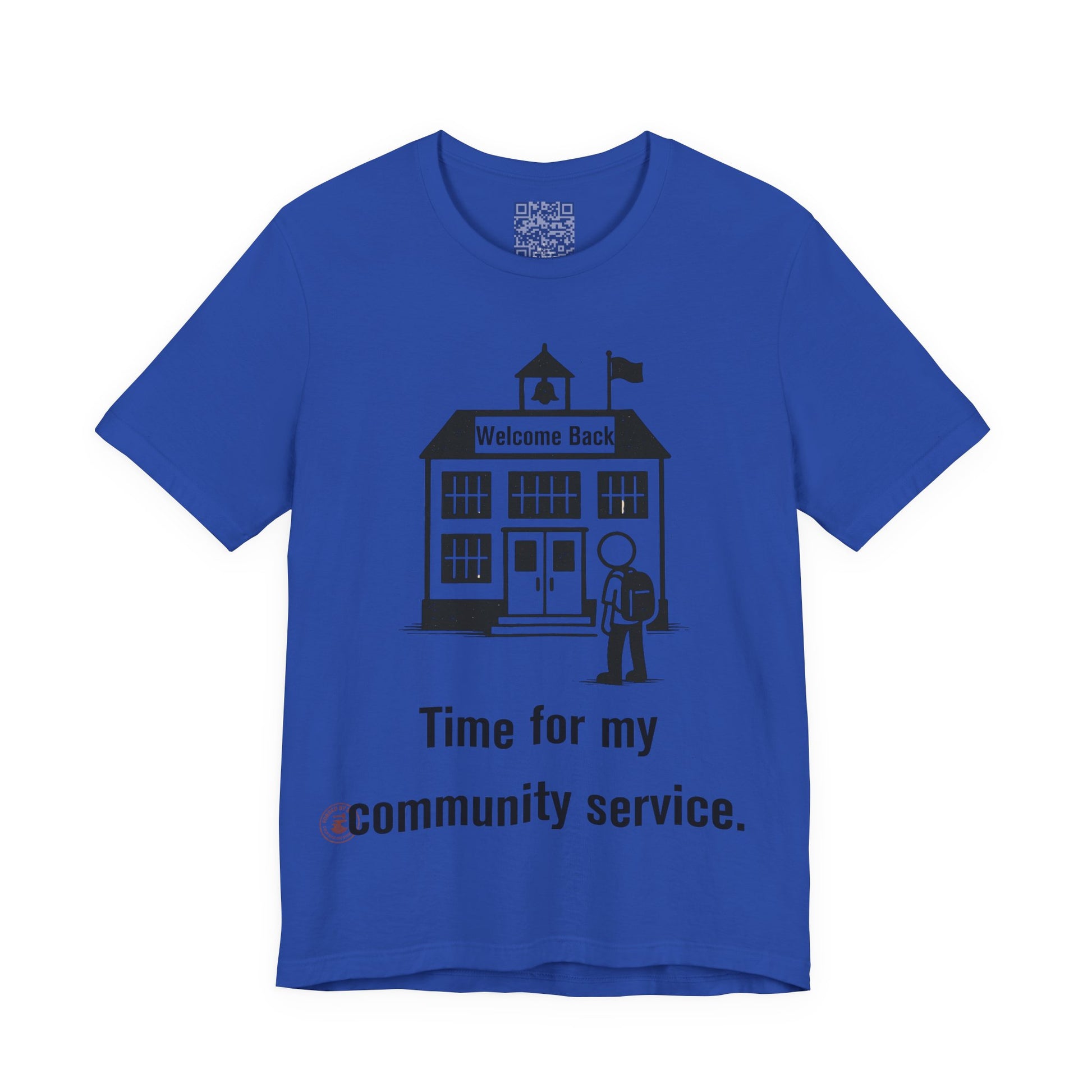 The "Time for My Community Service" T-shirt delivers the perfect blend of sarcasm and style, featuring a student walking into school under a "Welcome Back" sign with a bold, distressed caption. Ideal for students, teachers with humor, or anyone who treats school like a daily mandatory program.