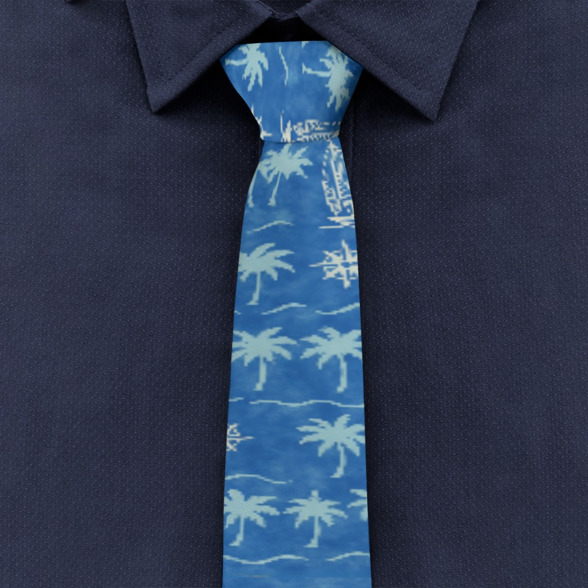 Add a splash of island charm to your formalwear with this Tropical Palm Tree Tie. Fashionable and elegant, this tie brings individuality to every outfit with its serene blue tones and palm tree design—perfect for those who carry vacation energy wherever they go.