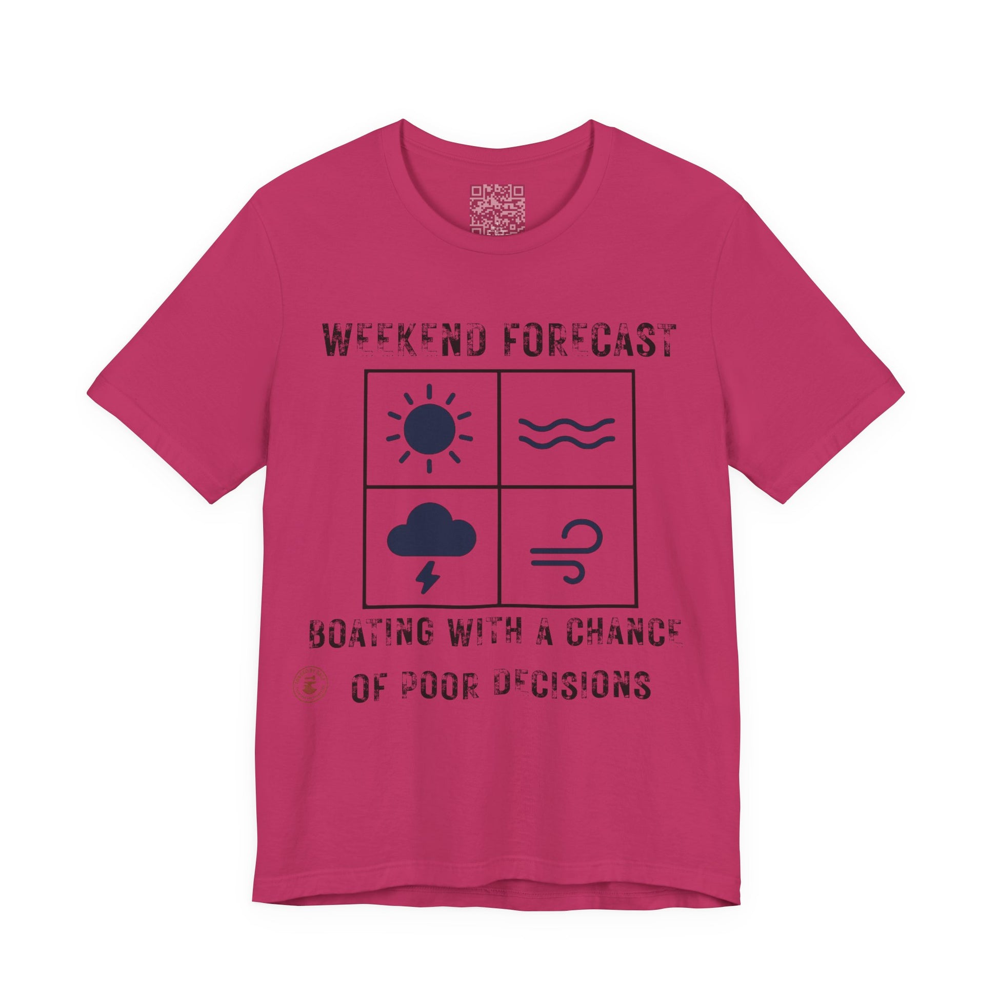 Set sail with humor and style in our Weekend Forecast: Boating With a Chance of Poor Decisions tee — the perfect shirt for every salty soul who knows that the best boating stories usually start with questionable weather… and even more questionable choices.